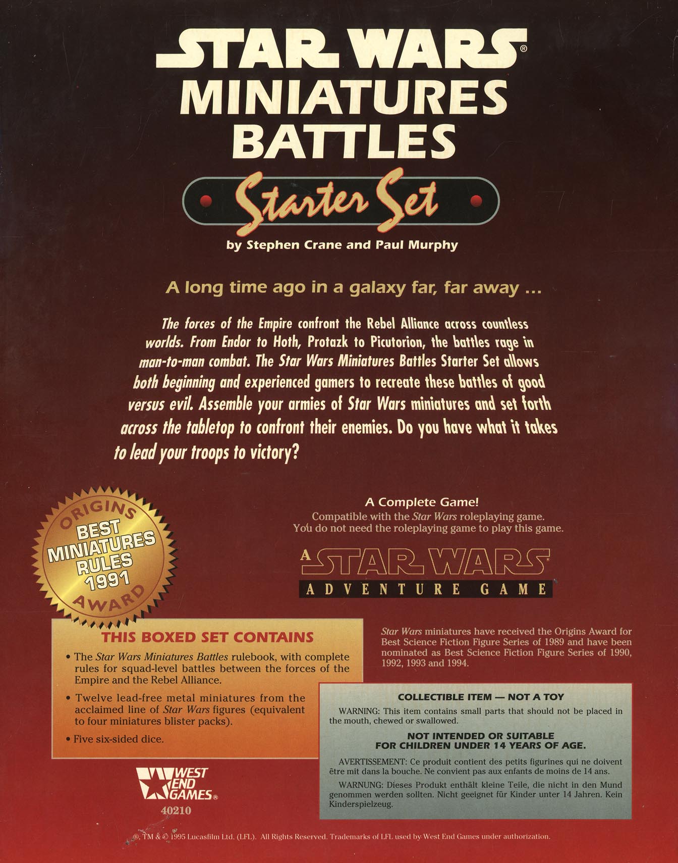 | | Metal miniatures: 1 | 2 (blistered carded, 12 figures total) |
